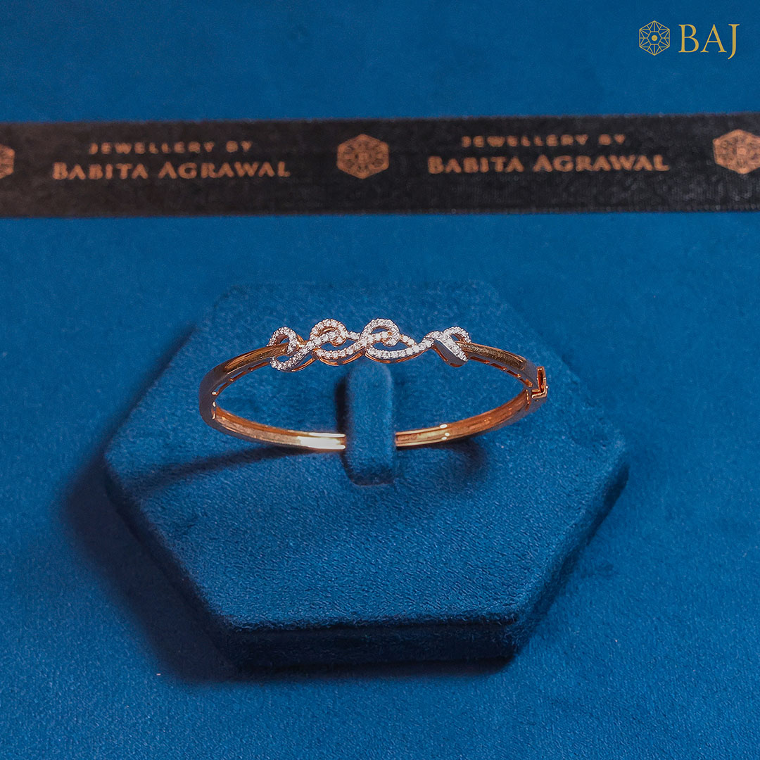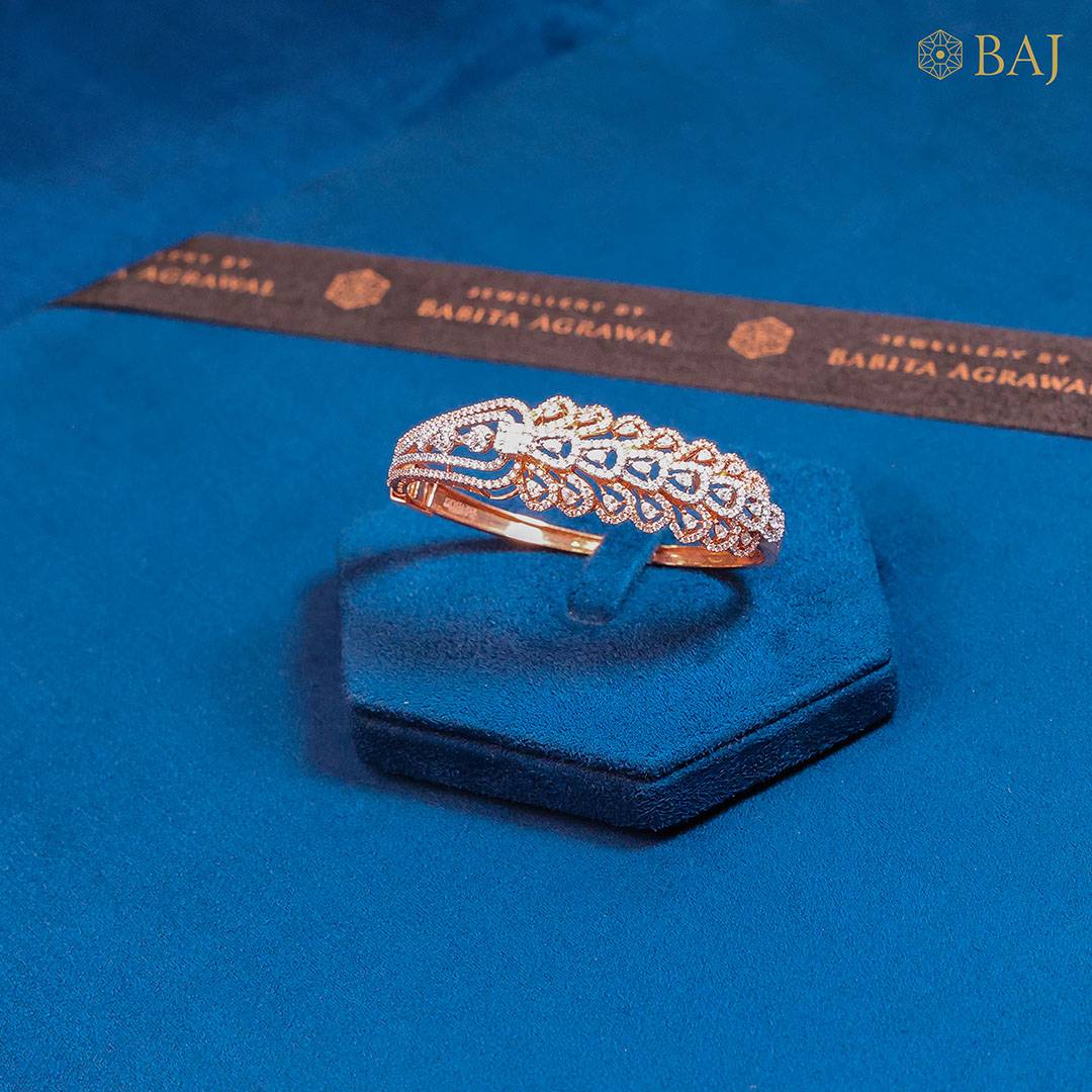 The womens bracelet diamond styles from Babita Agrawal Jewellery are an artistic fusion of bold kada designs and delicate diamond detailing. These bracelets are perfect for women who seek elegance without compromising on strength and tradition. Each piece is handcrafted with precision, using ethically sourced diamonds and premium quality gold in various tones: yellow, white, and rose gold.