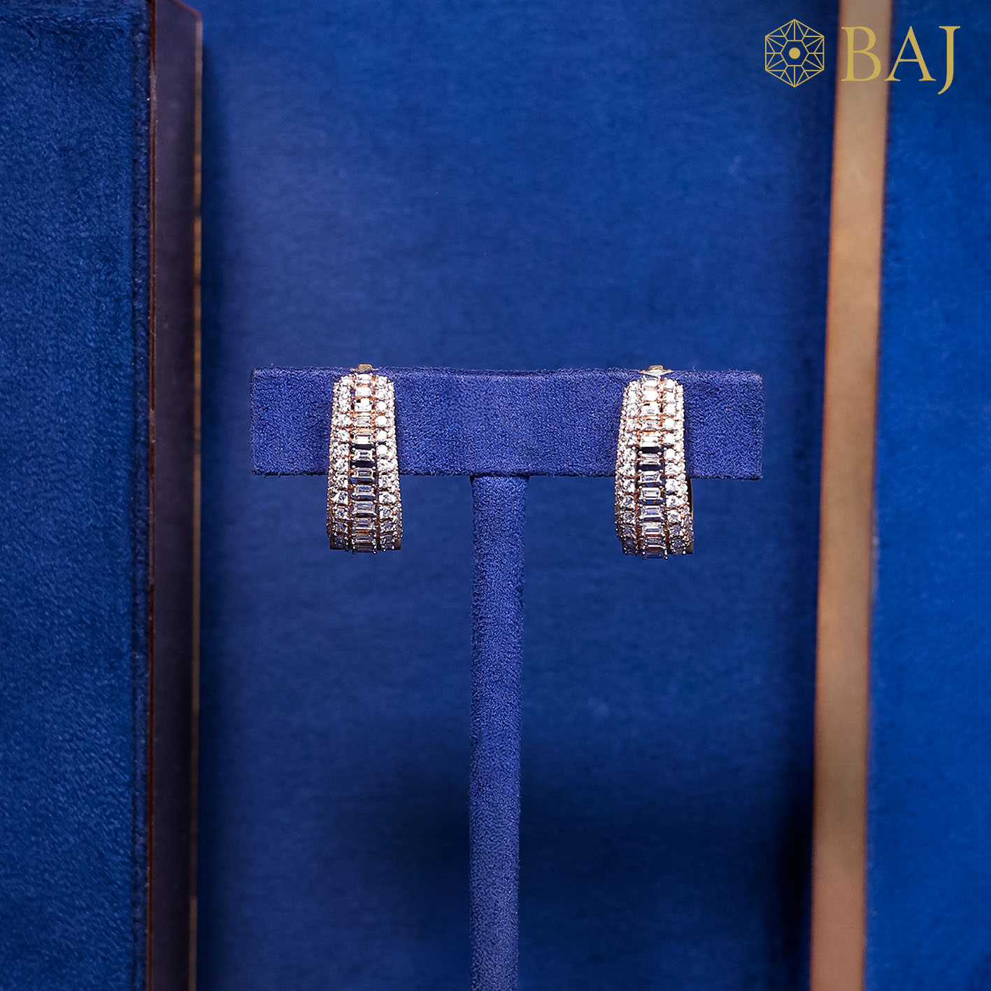 Make a bold statement with these designer diamond bali earrings, featuring 2.42 carats of shimmering baguette and round diamonds. Set in 18kt gold, the wide-band design adds a modern edge to your traditional collection. Ideal for cocktail wear, these bali earrings offer a blend of luxury and elegance.