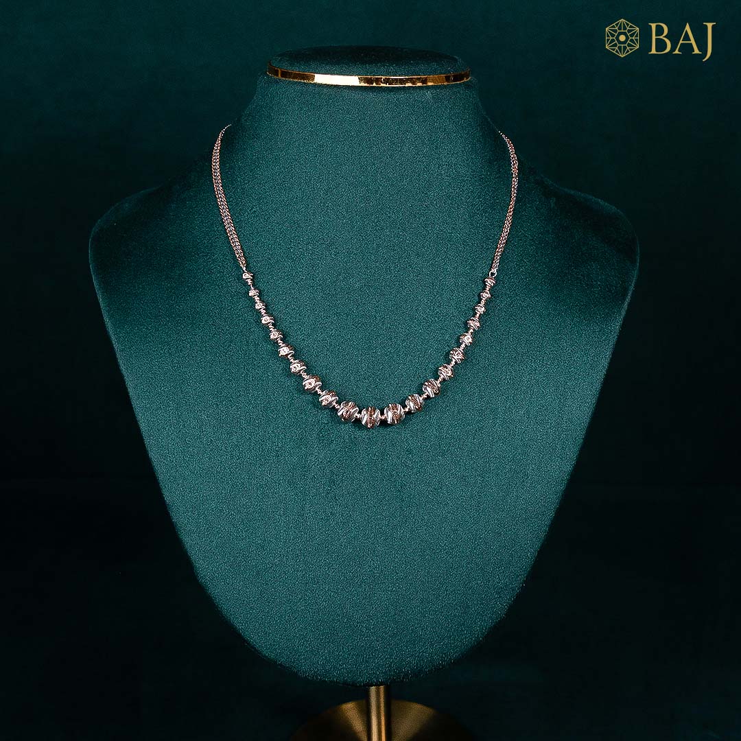 Crafted in 18kt gold, this refined gold chain for women features alternating textured and high-polish links that bring a graceful shimmer to your neckline. Lightweight yet detailed, it is perfect for both everyday elegance and special moments. Style it solo or pair with a pendant for a personalized, radiant look.