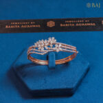 Fancy shaped diamonds in ethnic design kada bracelet in rose gold.