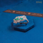 Green colour stone, diamond and gold kada style bracelet ethnic wear.
