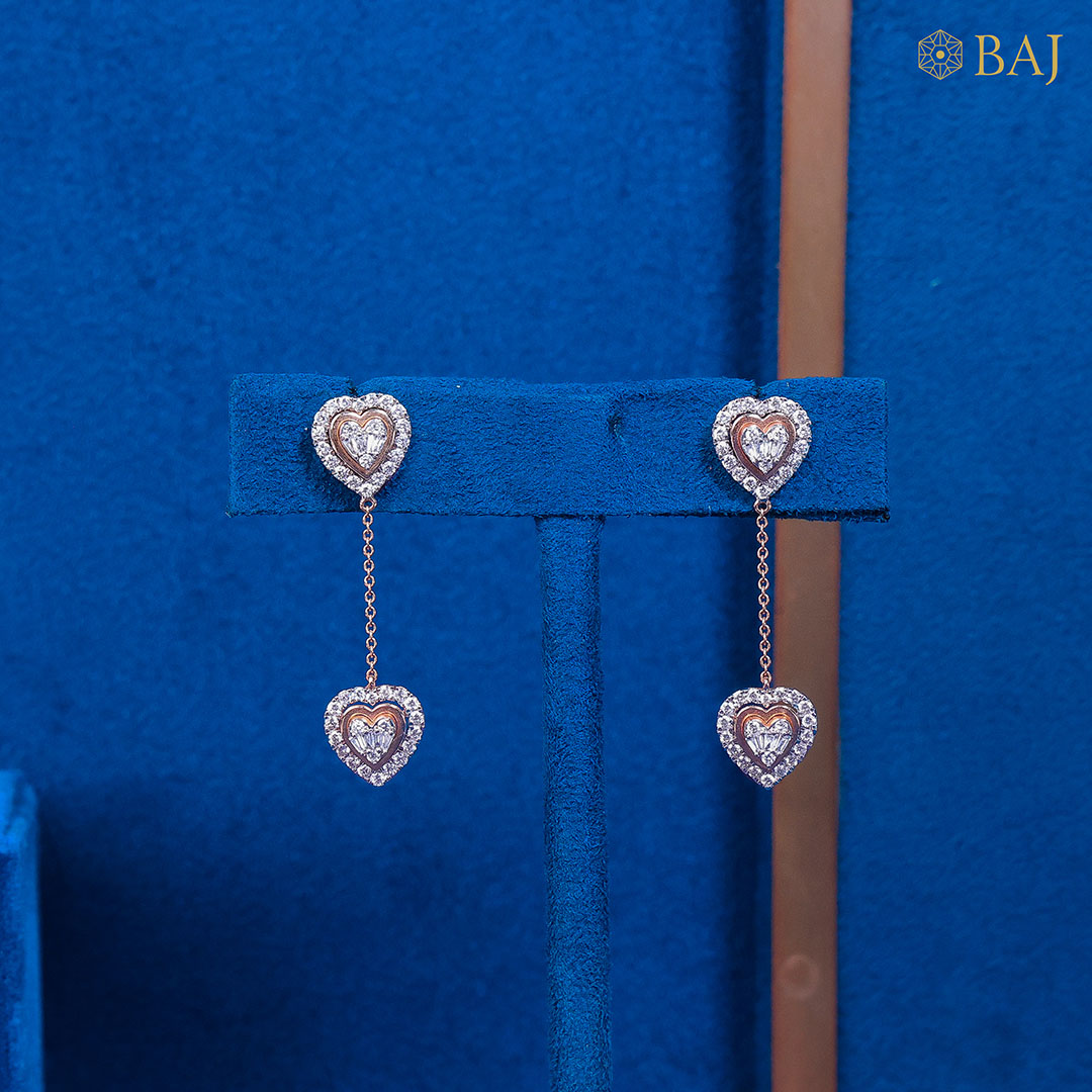 Charming and romantic, Heartline Drop is a graceful diamond earring for women who adore delicate detailing. Featuring twin heart motifs linked by a fine chain, these 18kt gold earrings sparkle with 1.24 carats of diamonds. Lightweight yet expressive, these diamond earrings for women are perfect for everyday elegance or a sweet date-night glow.