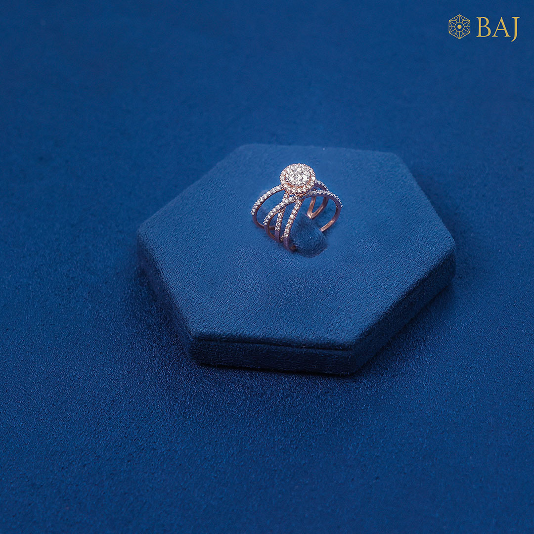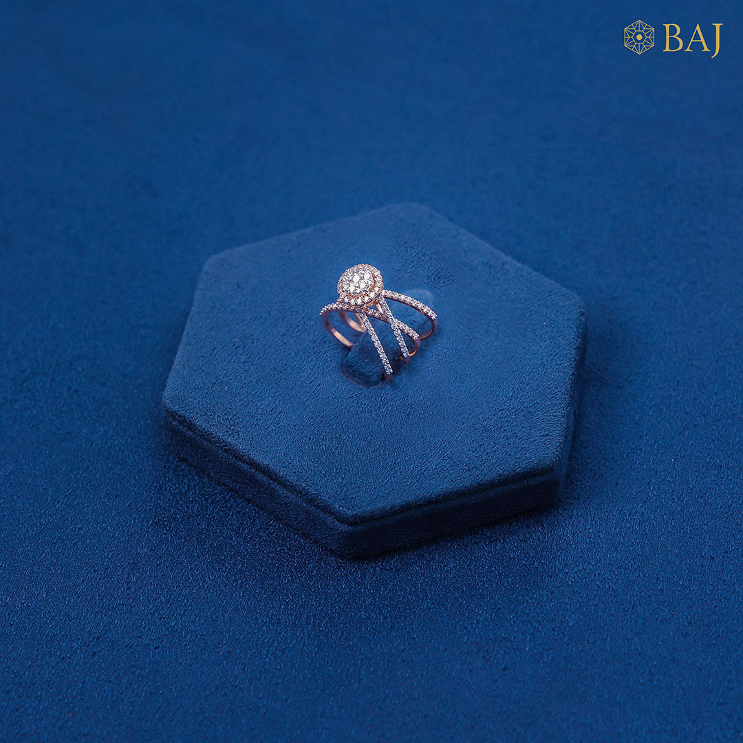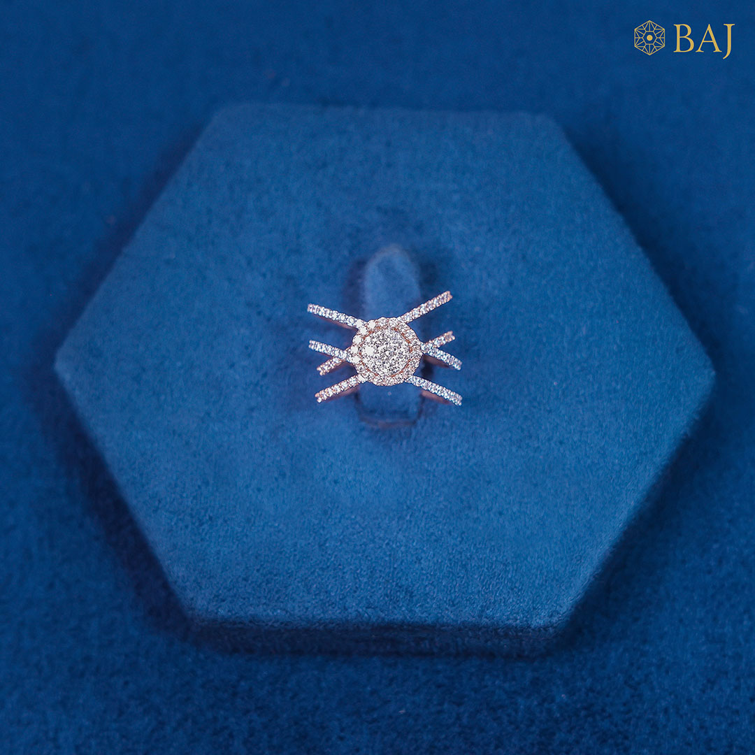 Graceful and captivating, this entwined diamond ring is a symbol of unity, strength, and enduring beauty. Two delicate bands intertwine seamlessly, representing the harmony of connection and love. At the heart of the design, a raised cluster setting emerges—like a brilliant bloom—featuring a radiant collection of diamonds arranged to catch and reflect light from every angle.