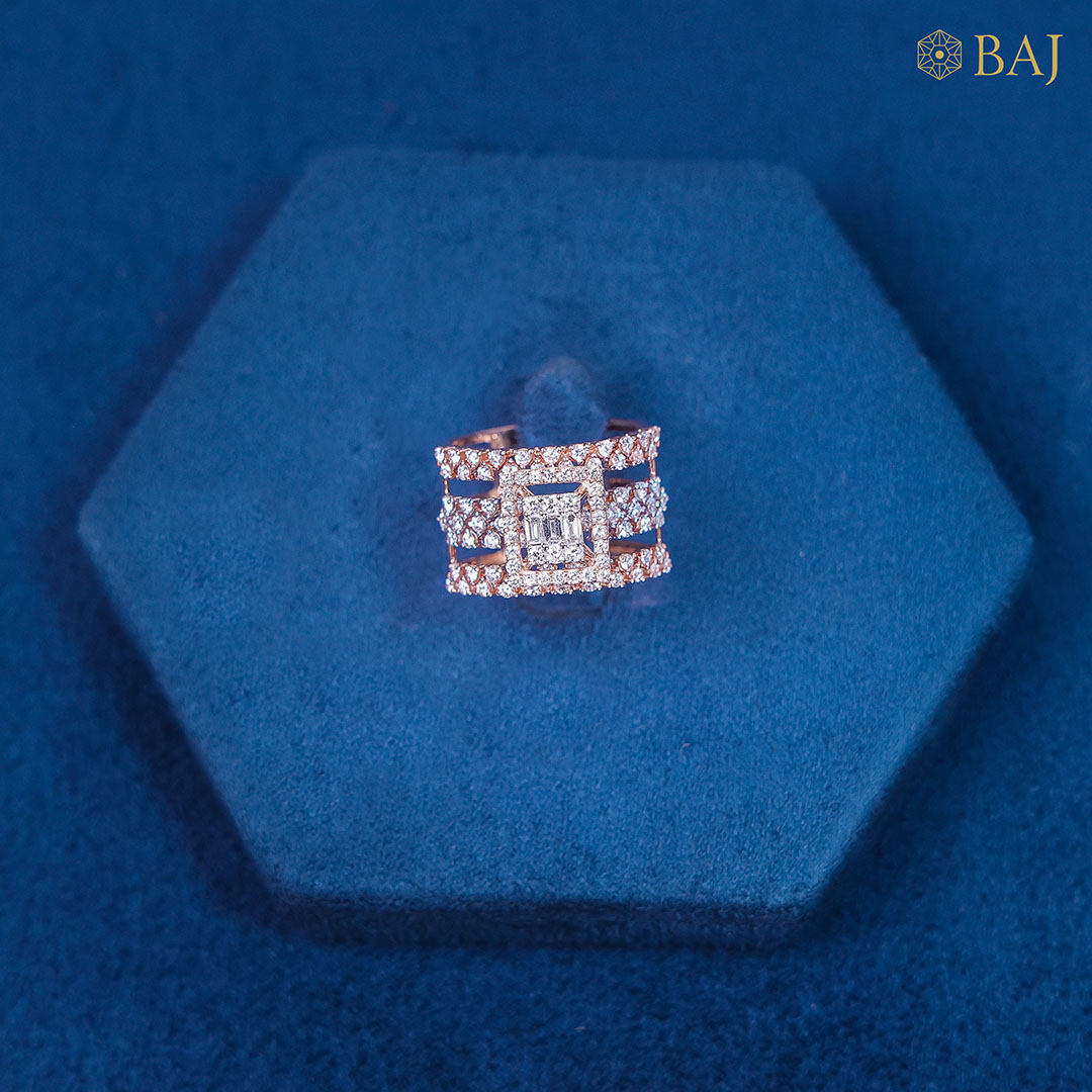 Make a bold statement with this exquisite three-layered cluster setting ring, designed to captivate from every angle. Featuring a dazzling arrangement of carefully selected diamonds, the ring showcases three concentric layers that create stunning depth and brilliance.