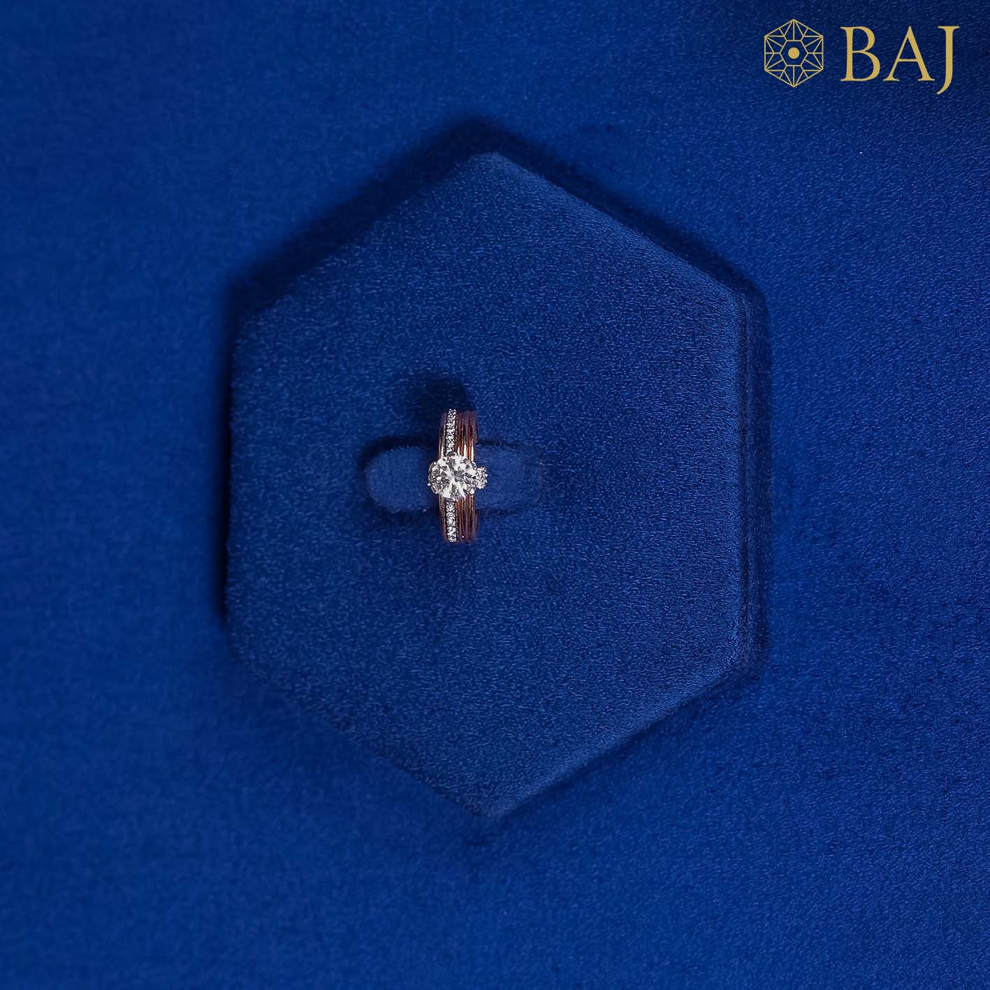 Bold and contemporary, this striking ring features multiple slender bands fused together to create a textured, layered look. Crafted in warm rose gold, the design is elevated by a single pop-up diamond that captivates with its brilliant sparkle. The contrast between the sleek stacked bands and the radiant centerpiece makes this piece a perfect blend of modern style and timeless elegance.