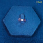 Solitaire setting in the centre, with fine diamond and two bands that resemble fine rose gold spring work. This ring fits daintily on fingers.