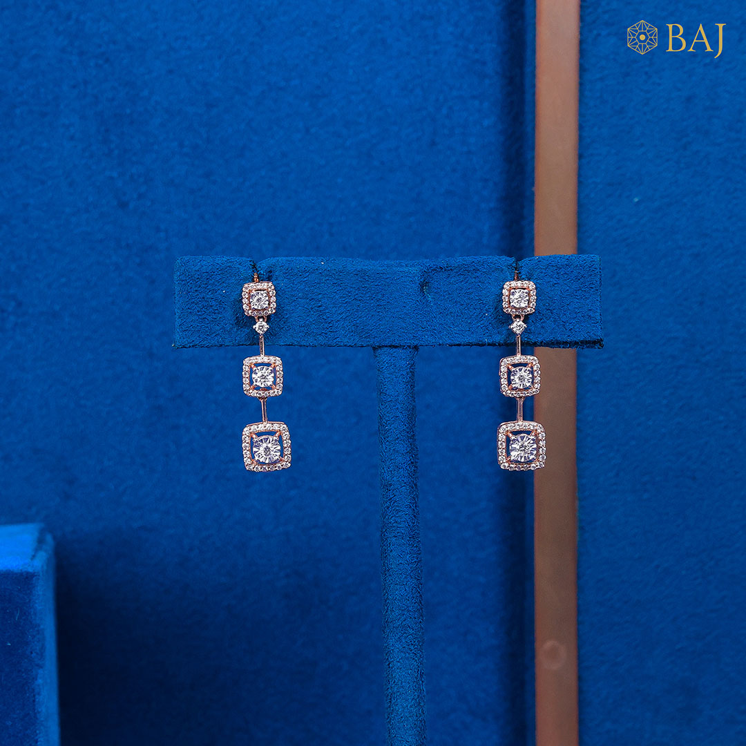 Add refined glamour to your style with Triple Spark Diamond Drops, the perfect diamond earrings for women who love a sleek, minimal statement. Crafted in 18kt gold and set with 0.63 carats of shimmering diamonds, these elegant danglers from the Mid Wear collection bring everyday sparkle with a modern geometric flair. Ideal for work or evening charm.