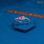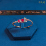 Red colour square stones, diamonds and rose gold ethnic design kada bracelet to match the outfits and indian design jewellery.