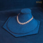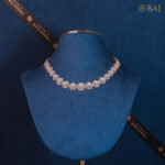 This elegant 18kt diamond necklace set features 4.87 carats of sparkling diamonds in a unique spiral motif along a refined single-line structure. A perfect blend of grace and symmetry, it’s ideal for evening occasions. A contemporary diamond necklace set with a bold, artistic flair.