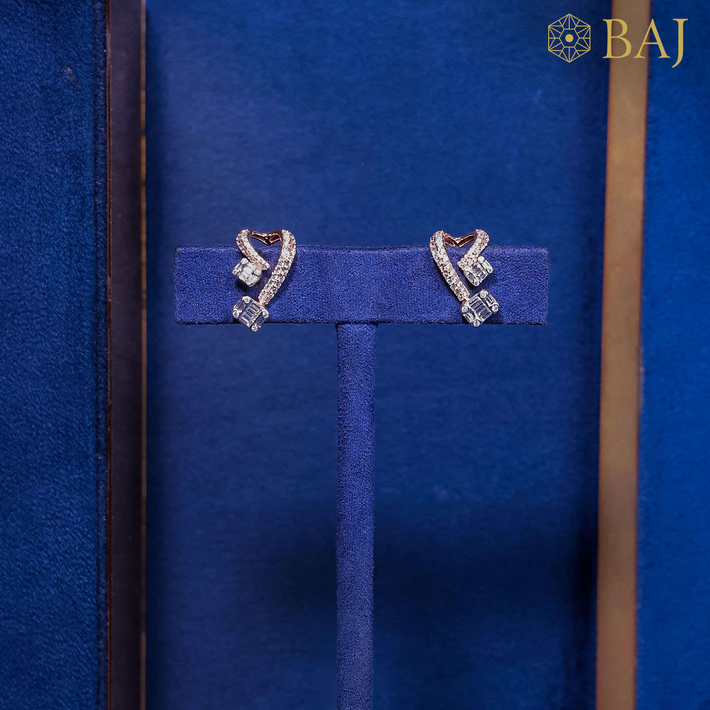 Add charm to your collection with these designer diamond bali earrings. Featuring a graceful heart-twist silhouette in 18kt gold, each earring sparkles with 1.2 carats of finely set diamonds. A perfect blend of love and luxury for modern Indian women.