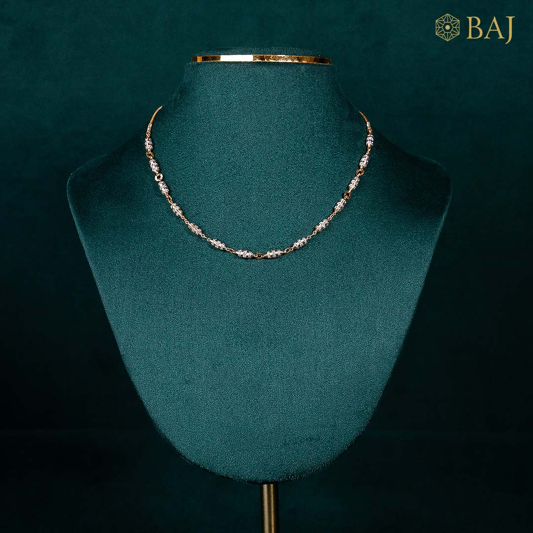 A sleek take on traditional gold chains, this lightweight 22kt chain features twisted links that add subtle movement and elegance. Crafted for everyday luxury, it complements both Indian and Western looks effortlessly. Ideal for gifting or self-indulgence.