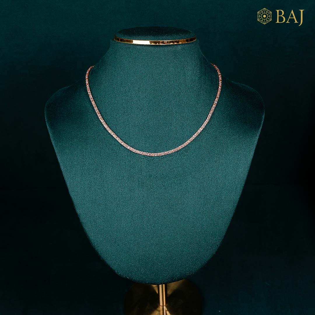 Refined and modern, this 18kt rose gold chain is crafted for effortless elegance. A lightweight, durable design makes it a standout among gold chains for women—perfect for layering or standalone wear. Its soft sheen and flexible texture elevate your daily look, offering sophistication with every outfit. A chic essential for today’s jewellery wardrobe.
